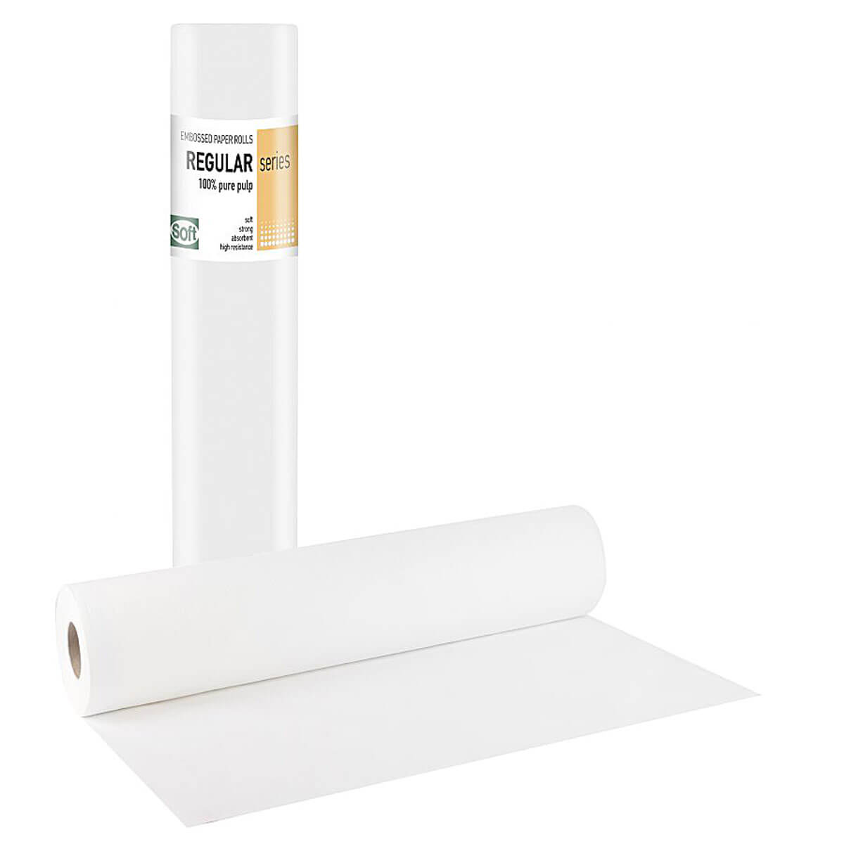 100% Pure Paper Pulp or recycled, soft, absorbent, waffle, Perforated every 38cm for easy cutting.
